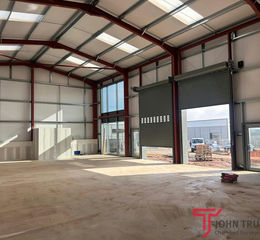 The units will be of steel portal frame construction with ridged and pitched insulated profile steel roofs incorporating double-glazed uPVC rooflights, with eaves heights of 20 ft (6.1 m). The walls will be full height insulated profile steel cladding incorporating a double-glazed, framed frontage, which will be finished in merlin grey powder coating.