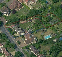 The front of the house faces south, and the principal rooms face east across the rear. The front of the proposed house is 46 metres distance from the main rear facade of the existing house at 14 East Ridgeway. The planning also includes a new gated driveway