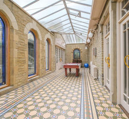Orangery - With ornate tiling and a glass ceiling this large orangery is south west facing and features plumbed central heating as well as borders ideal for any green fingered gardener wanting to bring the outdoors in.