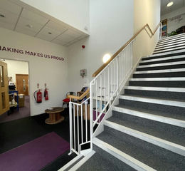 The first floor is arranged as a mix of open plan offices and meeting rooms, a modern fitted staff kitchen and break out area, and shower room.