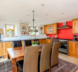 Kitchen / Dining Room – Fitted with A Range of Matching Wall and Base Units with Work Surfaces, Fitted One and A Half Bowl Sink Unit, Inset Five Ring Gas Range Cooker with Extractor Hood Above. Range Of Integrated Appliances Including Dishwasher, Washing Machine, Fridge and Freezer. Tiled Floor, Double Glazed Windows to Side Aspect, Double Glazed French Doors with Windows Either Side to Gardens.