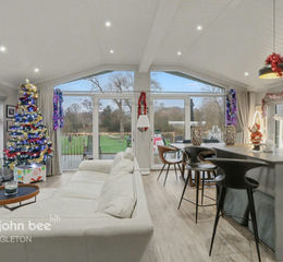 Step inside to a bright entrance hallway leading to a floodlit triple-aspect open-plan lounge, kitchen and dining area. Dual sliding doors open seamlessly onto the extensive decking, creating the perfect indoor-outdoor flow. The contemporary kitchen comes fully equipped with a fitted fridge/freezer, double oven, microwave, dishwasher, wine cooler, and a stylish island, complemented by a practical utility/storage space.