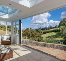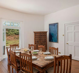 Beyond, the light-filled Sunroom links House and Garden, with bi-fold doors that open fully to the Terrace and the expansive views beyond. This connection to the outdoors makes it a particularly inviting room throughout the seasons, whether filled with summer air or bathed in low winter light.
