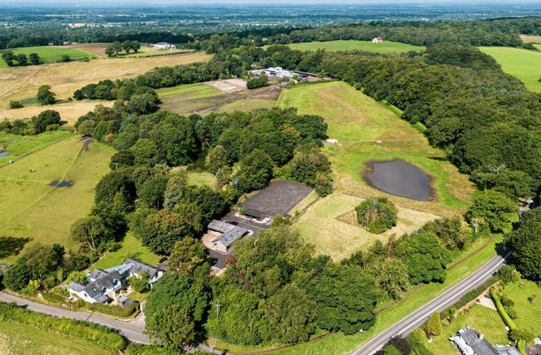 The formal garden has a stone flagged patio with water feature and walled border, large lawns with lake and woodland areas. The remaining acreage is separated into three paddocks. There is a large detached garage and tack room, three stables and various outbuildings including storage sheds and field shelters.