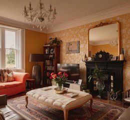 Inside, the plan reads with Victorian poise. The reception hall runs from the front door to a tall rear sash, its painted timber panelling, deep skirtings and gracefully turned stair setting an assured first impression. To the right, the formal rooms follow in sequence. The sitting room draws steady southern light through a run of tall sashes and centres on a period fireplace with an ornate cast iron surround and decorative tile panels. The proportions suit everyday living and sociable evenings, with ample clear wall space for bookcases and substantial seating without crowding. Alongside, the neighbouring dining room is arranged for entertaining, well-proportioned and bright, its decorative cornicing and chandelier lending quiet formality. A second fireplace provides a natural focal point, and the room comfortably takes a long table for eight to ten with space for a sideboard and serving table.