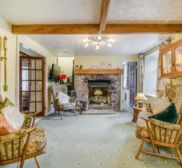 On entering this charming period home, you're welcomed into a spacious entrance hallway that immediately hints at the character and warmth within. Double doors open into a generous front reception room, believed to be the oldest part of the house, dating back to the mid-18th Century. This beautiful space showcases original features, including exposed beamed ceilings and a striking stone fireplace, complemented by original stone steps to the side an architectural nod to the property's heritage. Large front-facing windows flood the room with natural light, while a central staircase gently rises to the first-floor landing.
