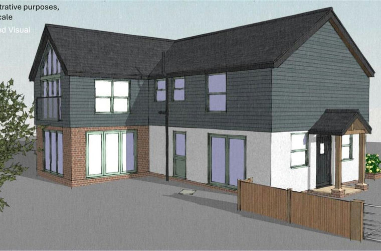 • A desirably located smallholding property, currently with new planning permission recently agreed to allow for it to be enlarged from an existing detached three double bedroomed house, to now have permission to be enlarged into a 5 double bedroomed detached country residence.