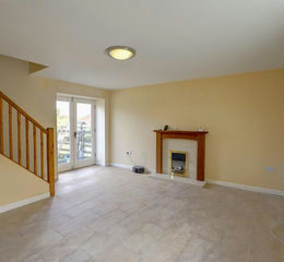 Step down one step from the kitchen into the well sized open plan living room, which has a window facing onto the front garden area as well as glazed double doors opening out to the yorkstone patio adjoining the large rear lawned garden. The staircase rises from here to the first floor and has a useful storage cupboard beneath, while a smaller second store cupboard houses the manifolds for the central heating system. The marble fireplace with moulded surround features an electric fire which compliments the underfloor heating.