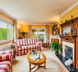 Having fireplace with slate hearth and marble surround with electric fire inset, windows to front elevation, radiator, sliding patio doors lead through to: