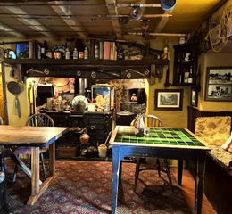Seats 10 with red tiled floor, beamed ceilings and featuring a huge old stove with baking oven.