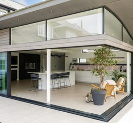 • Curved wave-form ceiling and Sky-Frame cornerless doors to dual aspects