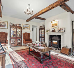 Leading on from the inner hallway, a door leads into the large SITTING ROOM, where views over the gardens can be seen through every window. A large brick fireplace with a polished Purbeck Stone hearth is the heart of this room, with a log burner for those cosy winter nights in front of the fire. A door from here leads into the octagonal CONSERVATORY with has 180-degree views of the gardens.
