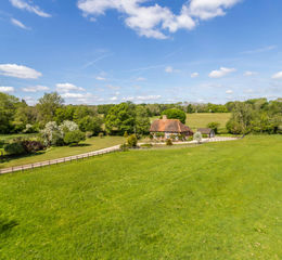 Conveniently situated to the south of Guildford, on the edge of the Thorncombe Valley, a Grade II listed Hall House, with post-war additions, sitting in formal gardens and overlooking its own paddocks.