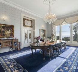 The quality of the house is exceptional and evident as soon as you enter the welcoming reception hall with its ornate plasterwork and carved door lintels. The features continue throughout the three main reception rooms, which all enjoy sea and garden views through large windows and are superbly positioned for entertaining. There are arched doorways between the dining room, sitting room and drawing room, which has a large bay window and fireplace. The reception hallway is equally impressive and grandiose with its sweeping staircase illuminated by a large stained glass window.
