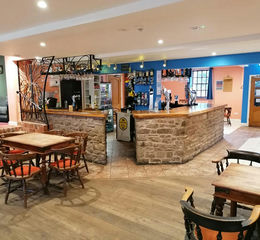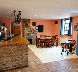 OPEN PLAN LOUNGE BAR on stepped level having mixture of stripped tiled and carpeted floor. Large central Bar Servery in lower section, of stone construction with wooden worktop and acting as the fulcrum of the trading area. Up style table and chairs to seat approximately 50. Pool table and darts throw.
