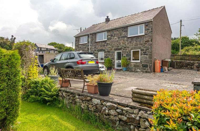 Situated in a most pleasant setting on the edge of the popular village of Rhostryfan is this generously proportioned 4 Bedroomed Detached Family Residence, standing in some 1.19 Acres of land to include a range of useful outbuildings, well-stocked gardens and ample off road parking. The position affords far reaching countryside and distant sea views, something which can be appreciated all the more so from the first floor. The layout of the accommodation is slightly unusual, being upside-down in nature which plays to its advantage for the maximum enjoyment of the location however, it’s highly practical in that there is a reception room and bathroom facilities on both levels. The ground floor sitting room has a more traditional feel with its feature fireplace (with modern LPG remote controlled stove) whilst the living room on the first floor is most spacious, light and bright room to enjoy. Bathroom facilities feature modern suites. The property comes fitted with uPVC double glazing and oil central heating. Externally, there’s a private driveway (with cattle grid) providing ample off road parking and a there’s even an additional driveway for access to the land and outbuildings. The gardens are primarily laid to lawn and home to a mixture of mature, plants, trees and shrubs plus an ornamental pond feature. Within close proximity of the house is a secure store, potting shed, garden room and summer house (all with power/light). The outbuildings consist of 2 large Garages and 2 Barns where beyond are 2 large paddocks – perfect for some livestock or perhaps a pony or two.