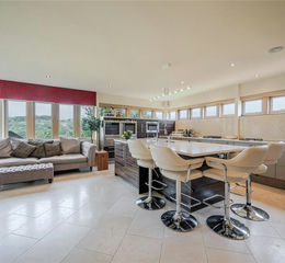 The open plan dining kitchen boasts a large central breakfast bar, integrated Sub-Zero fridge freezer, 2 x Siemens ovens, warming drawers and microwave. Wolf steamer, bbq grill, gas wok unit and separate induction unit, Quooker hot water tap and waste disposal unit - plenty of room for a large dining table and a cosy place to relax.