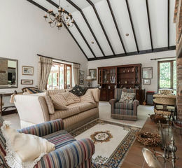 Tucked behind a sweeping carriage driveway, the house unfolds into a generous and versatile layout of over 3,700 sq. ft. The spacious entrance hall and dining area form the heart of the home - wonderfully open, welcoming spaces designed for entertaining and gathering with loved ones. The sitting room is truly striking, with a dramatic vaulted ceiling and an impressive fireplace, ideal for cosy evenings in front of the fire.