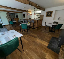 32' 3" x 16' 0" (9.83m x 4.88m) spacious split level bar/lounge area with solid timber fitted service bar counter area, solid timber flooring, double aspect windows to front and side, 3 x radiators, exposed beams to ceiling, feature fireplace and wall lights.