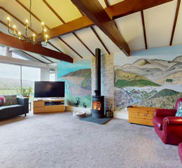 Lounge - 6.20m x 5.28m (20'4 x 17'4) - A very spacious light and airy room designed to take full advantage of the outstanding south and westerly views over the adjoining farmland. It has a partially vaulted ceiling with exposed beams. A wide full width glazed window, the two central sections of which open to the balcony beyond, modern wood burning stove on a raised hearth, built-in double door storage cupboard, TV point, two contemporary panelled radiators.