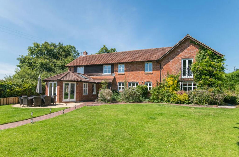 The first floor has an extensive landing which, because land rises to the rear of the property, has French doors opening to the rear garden patio. The landing is large enough to provide a study area overlooking the garden and also includes a very large airing cupboard and a storage cupboard with access to the loft. The master bedroom has a dual aspect and a vaulted ceiling with exposed beams and an ensuite shower room. The guest bedroom offers a double aspect overlooking the gardens, extensive built-in wardrobes, and a beautifully appointed ensuite shower room with a large walk-in shower. Bedroom three has a dual aspect and a vaulted ceiling plus a Juliet balcony overlooking the garden. There are two further bedrooms and a further superb shower room.