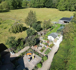 Rear Garden & Grounds - Landscaped with gravel & stone-flagged areas, pergola & raised beds surrounding a stone-flagged seating area, outside lighting & cold-water tap. Beyond is a lawned area with raised beds. Orchard (Apple, Plum & Pear, Damson, Medlar & Cherry), OUTBUILDINGS & FIELD SHELTER (7.41m x 5.57m/24'3" x 18'3") with solar lighting & water connected. Fenced MEADOW & grass FIELD extending to about 2.50 ACRES, including a copse backing on to (& gate to) National Trust Woodland - A True Wildlife Haven.