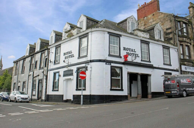 The Royal Hotel occupies a three storey, semi-detached building, under a pitched slate roof. The property is located at the junction of New Street and Garnock Street in the centre of town, where it benefits from sizeable amounts of passing trade.