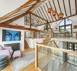 This unique and characterful four-bedroom barn style home on Walton Road offers a sophisticated "upside-down" living arrangement, thoughtfully designed to maximize natural light and capture elevated views. By placing the primary living and entertaining spaces on the first floor, the home takes full advantage of the building’s architectural height, often featuring striking vaulted ceilings and original exposed timber beams. The first floor serves as the social heart of the property, boasting expansive, open-plan reception rooms flooded with light, alongside a high-specification kitchen and dining area perfect for modern family life or hosting guests and a large terrace with steps down to the garden.