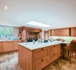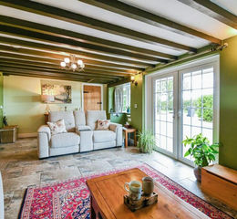 Lovingly updated and extended, the main residence retains classic cottage features such as exposed beams, a wood-burning stove, and traditional windows, while incorporating high-spec contemporary finishes throughout. The heart of the home is a spacious, light-filled kitchen with views over the garden and pond—perfect for both everyday living and entertaining.