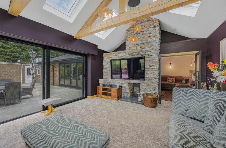 The entrance hall has a u'PVC door with a glazed side panel and an upright radiator. The open plan living area has a modern fireplace with a inset log burning stove and T.V point. There is an adjoining snug with a T.V point and a window to the front.