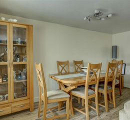 Kitchen Diner - 5.44 x 3.56 (17'10" x 11'8") - A beautiful kitchen diner which has a range of fitted wall and base units with complementing worksurfaces. There is an integrated dishwasher and a sink drainer unit. uPVC window to the rear elevation. Space for a range cooker. Pantry cupboard and understairs cupboard. Radiator. Tiled flooring.