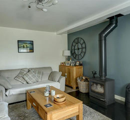 Lounge - 5.89 x 4.56 (19'3" x 14'11") - A highly attractive and spacious living room. The centrepiece is the lovely wood burning stove set upon a hearth. There are two uPVC windows to the front elevation which give the room ample natural light. Karndean flooring. Door leading through to the kitchen dining room.