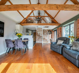 A rare opportunity to acquire a beautifully converted two-bedroom barn, offering a generous garden and the added benefit of parking for four to five vehicles. This thoughtfully designed property features oak flooring, exposed brickwork, and vaulted, beamed ceilings with a galleried landing, all set within mature and well-established gardens.