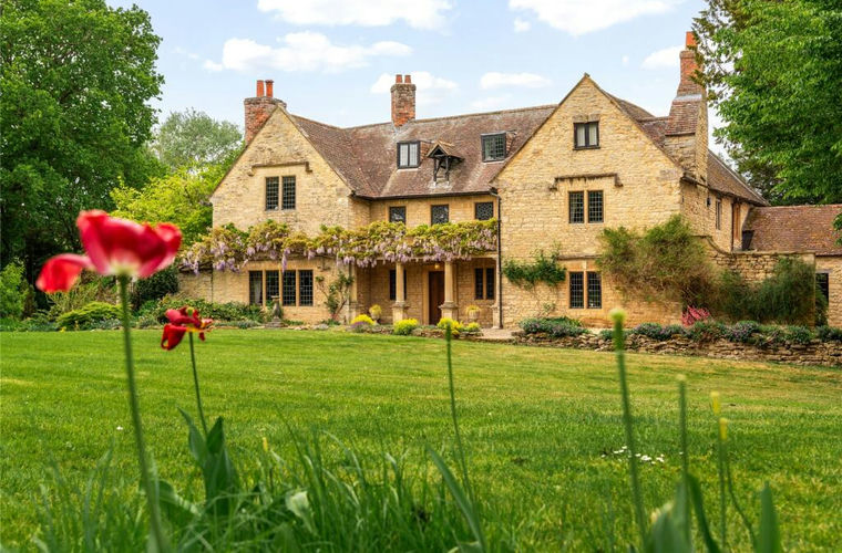 A Grade II listed 17th century former Rectory with driveway parking, a double garage, outbuildings, and approximately 2 acres of wraparound gardens, within walking distance of local amenities in Sherington village. The property has a period Jacobean exterior and retains period features including mullioned windows, fireplaces, decorative plasterwork, exposed beams and timbers, and an 18th century staircase. The main house has over 5,450 sq. ft. of versatile accommodation with an imposing entrance hall, three separate receptions rooms and a nearly 32 ft. open plan kitchen/breakfast/family room with pantry and adjoining utility room on the ground floor. The first floor has four double bedrooms, a cloakroom and two bathrooms and there are three further bedrooms, a study and a shower room on the second floor. In addition to the main house accommodation there is an integral double garage, extensive driveway parking, and over 1,000 sq. ft. of detached outbuildings.