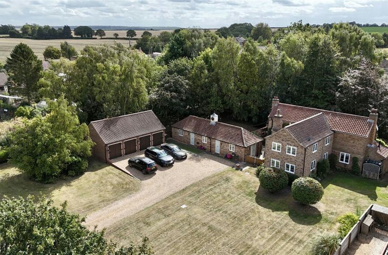 The property sits upon approximately 1.5 acres (subject to site survey) with the front and side having grass laid paddock type gardens with front gated access, hedge defined boundaries, a number of mature Silver Birch trees and a number of fruit trees. Access via a five bar timber gate leads to formal front gardens that are lawned and have steps down to a flagged seating area that runs across the front boundary with picket fenced gated access to a closed side lawned garden. Vehicular access is to the rear via double opening remote operated electric gates with a pebbled driveway providing parking for an excellent number of vehicles and leading to the quadruple garage. The gardens adjoining the driveway are lawned with enclosed fenced and hedged boundaries and with mature planted borders.