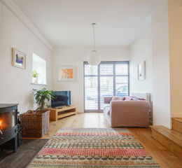 Reception Room - Double glazed window, hardwood door, central heating radiator, log burner fireplace, Oak floor, UPVC double glazed French door to rear.