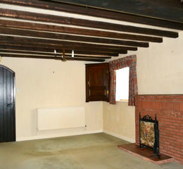 Two central heating radiators, exposed beams.