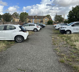 The open parcel of land provides dropped kerb to the highway and space for around 30 car parking spaces.