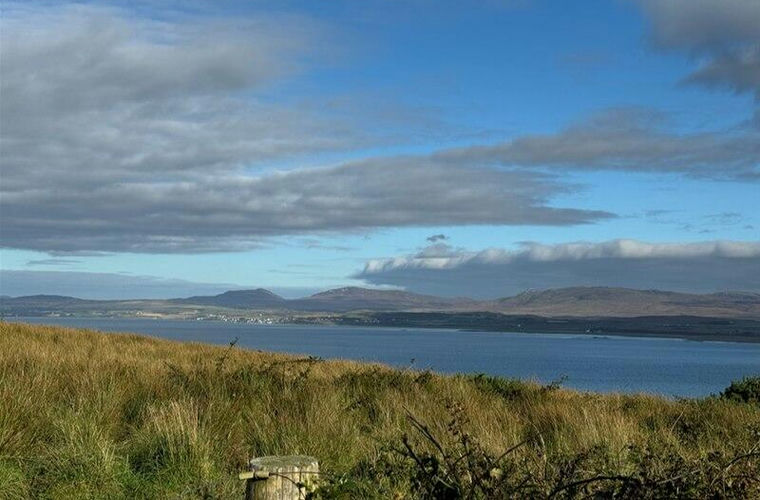 Damaoidh occupies an outstanding site, bordered by croft land, with super views to the north-east, east and south over Loch Indaal and Port Charlotte. On a clear day, the Paps of Jura, Bowmore, Laggan Point, the American monument on the Mull of Oa, and Northern Ireland can all be seen. The property is accessed by way of a private track which leads in a north-westerly direction from the former Free Church Manse beside the main A847 road from Bruichladdich towards Port Charlotte. After about half a mile, the track loops left around the house known as Lorgbaw Hill after which it more or less peters out. About 200 metres of track leading generally in a north-easterly direction from beyond Lorgbaw Hill to Damaoidh needs to be reinstated. The plot extent is measured at 1086 square metres (about a quarter of an acre) and is indicated outlined red on the appended plan. The last part of the access servitude route is also shown coloured orange.