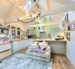 - Striking two-bedroom barn conversion with vaulted ceilings and exposed A-frame beams
