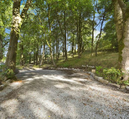 This impressive entrance features a large sweeping gravel drive where there is generous parking for several large vehicles and car parking with level access to the property.
