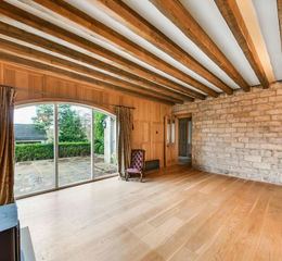This is of a particularly good size, it has a very high ceiling height with beams and timbers on display. Once again, a continuation of the stunning stone-flagged flooring and the hallway also has a picture light point. It gains a lovely view via the glazed doors to the sitting room out over the gardens and fields to the rear of the property. A further timber door gives access to the downstairs WC.