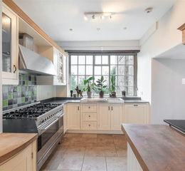 One enters the property via the original panelled front door, which opens into an impressive grand hallway ; The Hallway grants access to a characterful dining room , featuring a beautiful stone fireplace, a spacious drawing room which is flooded in natural light from a large bay window and affords views out over the fantastic grounds, and through to the kitchen. The family kitchen dining room is fitted with a comprehensive range of bespoke, handcrafted units, granite worktops and equipped with a seven burner stove, limestone flooring and integrated appliances. Off the kitchen, a lobby with built in larder grants access to a further family room with a feature brick inglenook style fireplace with a cast-iron log burning stove, stone paved floor. There is a study and WC off the family room, with a spiral staircase leading to a large first floor home office or games room with adjoining storage room .The dining kitchen grants access to the cellars which are an intriguing labyrinth of rooms, ideal for maximising storage under the house or creating a show stopping wine cellar.