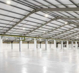 The property is newly refurbished with a two-bay steel portal frame warehouse featuring part brick/ clad elevations, a 4.3m eaves height, and a new profile clad roof with LED lighting. Access is via a side roller shutter door and a rear dock level loading door. The front office block, partially single and two-storey, includes a canteen, WCs, meeting rooms, and open-plan offices, all with suspended ceilings, CAT II lighting, central heating, and carpeting. The site also offers two vehicular access points and surfaced car parking and yard areas.