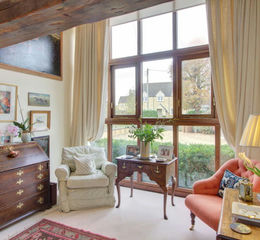 As you enter the property you are greeted by the kitchen-diner / family room located at the rear of the property. Measuring 36’ 8” x 17’ 4”, this open-plan family space truly is the heart of the home. The kitchen benefits from fully fitted wall and base units with integrated oil-fired AGA, electric oven and hob, and dishwasher as well as a separate utility room which houses the boiler with space for a freestanding washer / dryer. The kitchen-diner enjoys views over and access to the substantial rear garden via French doors and benefits from the morning sun due to the abundance of glass in place. With ample space for a large breakfast table there is also a snug area to enjoy with space for a sofa and bookcase. Oak beams and stone walls retain the original barns character, yet the addition of a modern conservatory makes the space ideally practical for modern families.