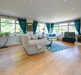 Hidden away from the road, this deceptively specious five bedroom detached chalet bungalow is nestled within a plot of approximately 1.4 acres in the pretty hamlet of Lenham Heath between the popular villages of Charing and Lenham.