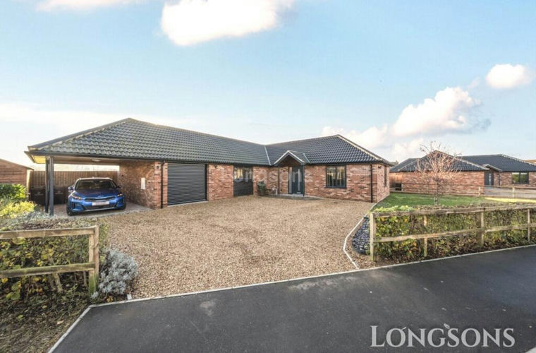 Ideally situated with no passing traffic in the market town of Watton, Longsons are delighted to bring to the market this three bedroom detached bungalow with south facing countryside views. The property is only three years old and offers three double bedrooms, en-suite shower room, open plan kitchen/dining family room with integrated appliances and patio doors leading to the rear garden, carport, garage, delightful gardens, ample off-road parking, underfloor heating supplied by an air source heat pump and UPVC double glazing.