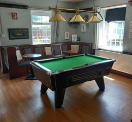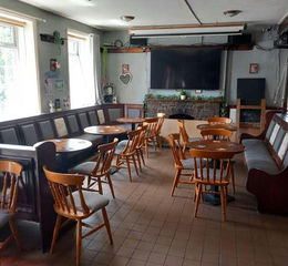 Front entrance leading into LOUNGE BAR being a large, open plan room seating approximately 40 with ample room for more standing. The room also incorporates additional pool and darts areas. It is comfortably furnished with quarry tiled and stripped wood effect floor, part wood panel walls, and exposed stone chimneys. Large 'L' shaped wood panel fronted bar counter.