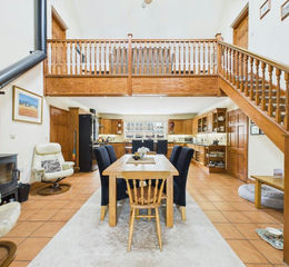 The main residence comprises a welcoming entrance hall, three reception rooms including a bright and spacious sun lounge, an open-plan kitchen/breakfast room with feature galleried landing overlooking a versatile family area, a utility room, five bedrooms (two with en-suite facilities), and a family bathroom — all thoughtfully arranged to provide comfort and flexibility.