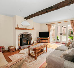 With engineered oak flooring, feature brick fireplace with 'Contura' wood burning stove in situ, exposed brickwork and feature beam to ceiling, ceiling spotlighting, TV point and telephone point, French doors to garden and internal latch door.